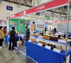 2024년 11월 23일 부산 벡스코에서 유기농 친환경 귀촌박람회 경상남도 부스에서 특산물인 단감 판매와 나만의 꽃을 담은..